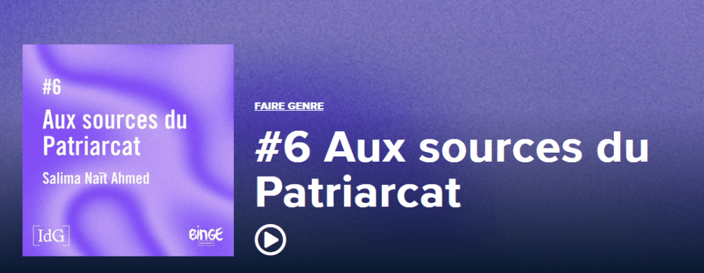 • Intervention pour le podcast « Faire genre »: épisode n°6, « Aux sources du patriarcat » (mars 2023). Comment définir « le Patriarcat » ? Et comment s’y prendre pour déconstruire l’idée de « mythe patriarcal » encore souvent évoqué, et expliquer la persistance de ce système dans nos sociétés capitalistes où l’exploitation des femmes et des minorités demeure.