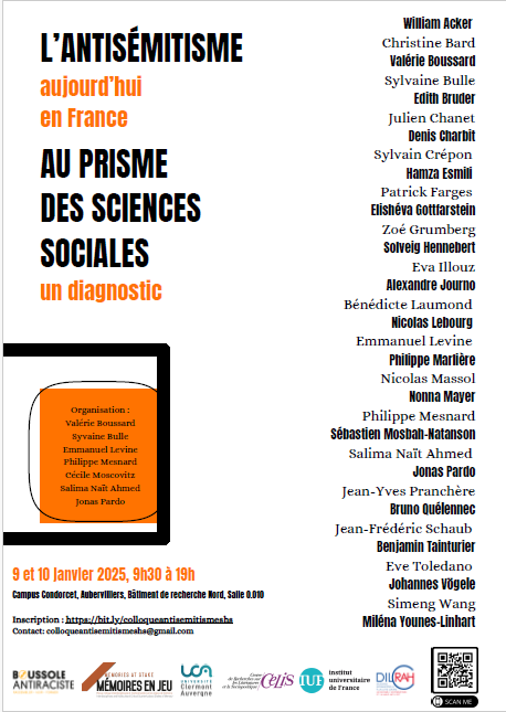 • Interventions au colloque l’antisémitisme aujourd’hui en France au prisme des sciences sociales 9 et 10 janvier 2025