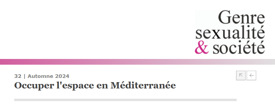 • Le dernier numéro de la revue Genre, sexualité et société, « Occuper l’espace en Méditerranée », est en ligne: https://journals.openedition.org/gss/8880