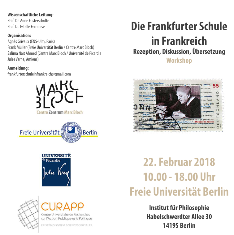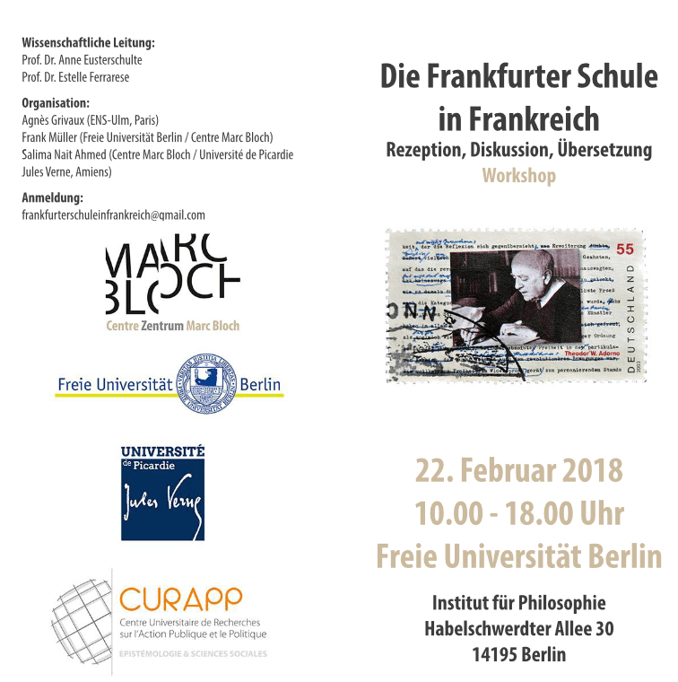 « Gender & Kritik der Entfremdung bei Adorno », invitation au séminaire « Familie, Sozialisation, Geschlechterverhältnisse », Institut de Recherche Sociale, Francfort-sur-le-Main.
